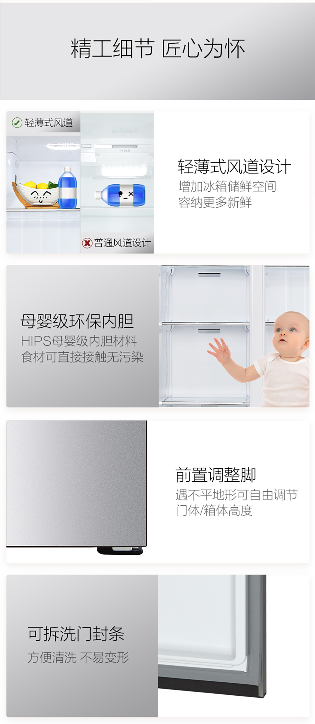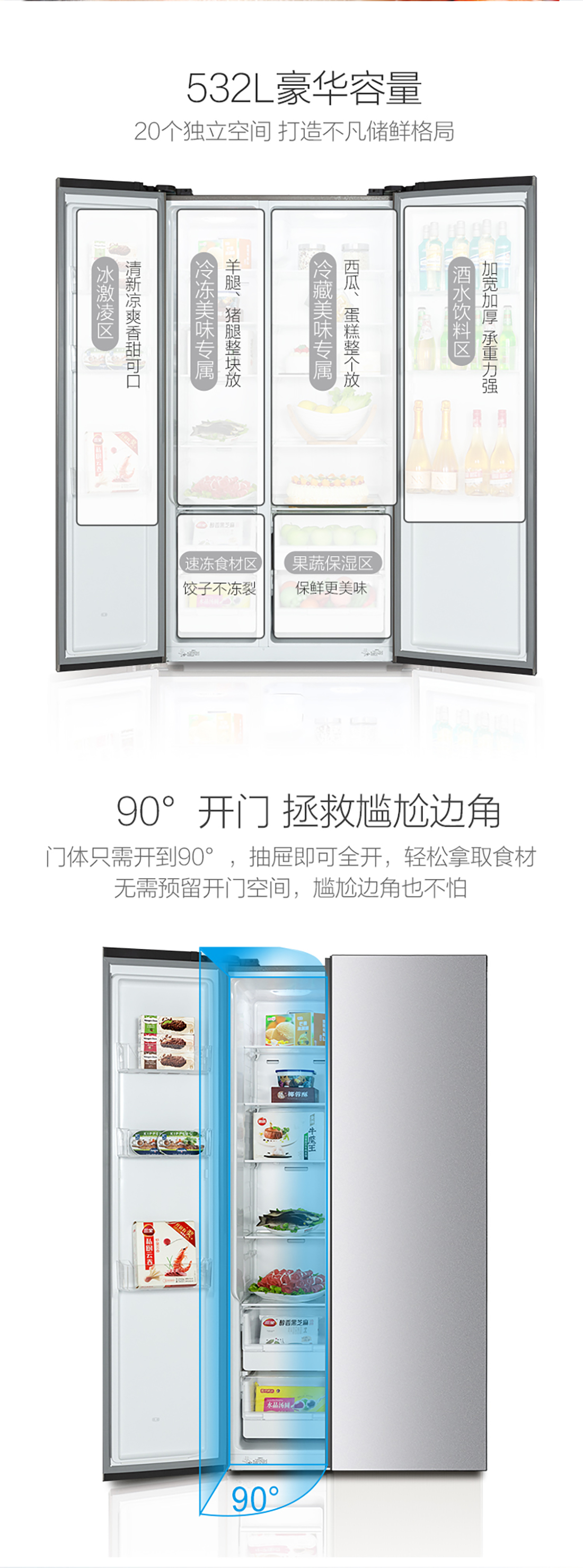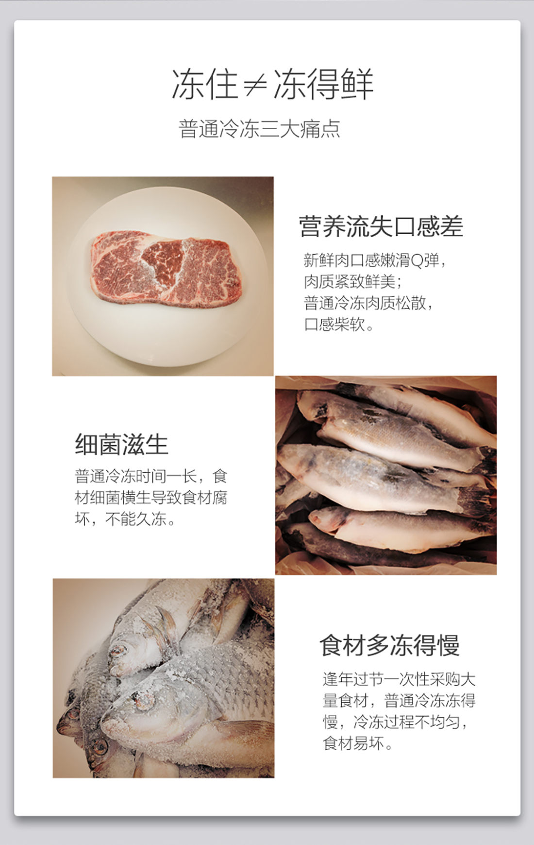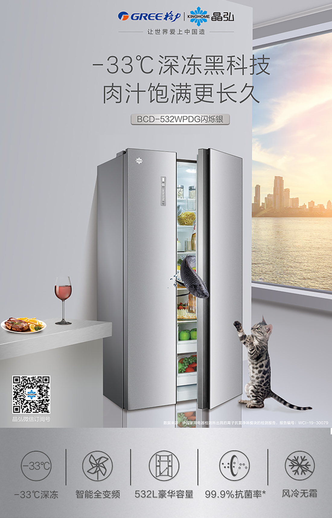 搭載-33℃深凍鎖鮮科技,肉汁飽滿(mǎn)更長(zhǎng)久。采用離子長(zhǎng)效抗菌凈味,抗菌率高達(dá)99.9%。3D沐風(fēng),風(fēng)冷養(yǎng)鮮,無(wú)需鑿霜。