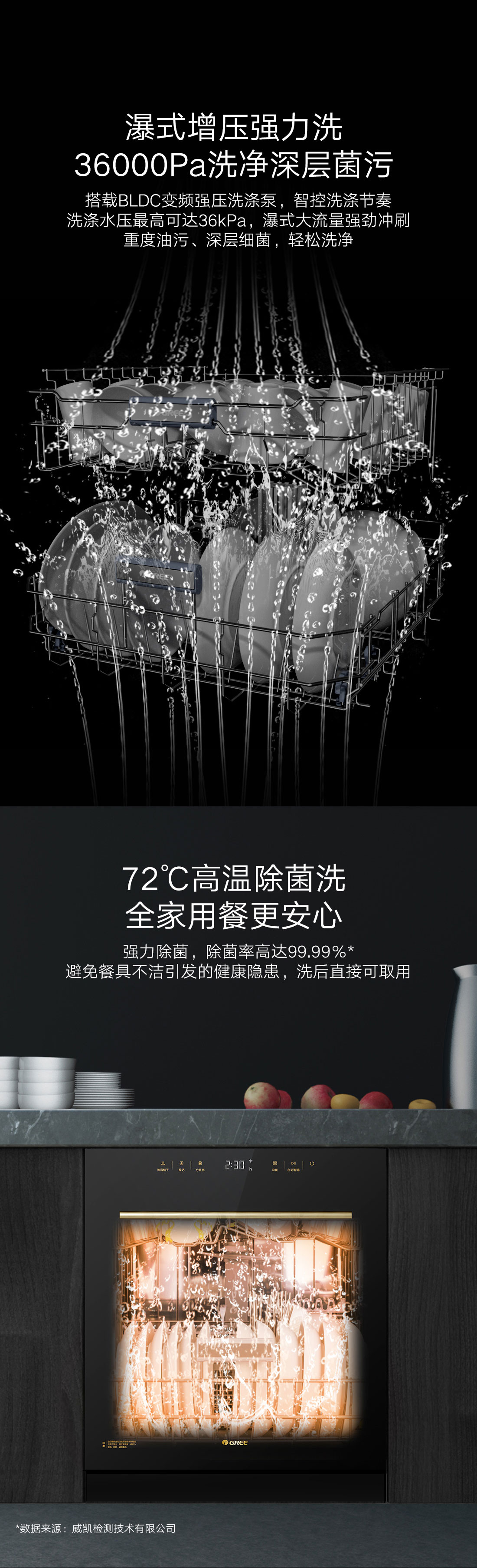 搭載瀑式增壓強洗科技,36KPa洗凈深層菌污,除菌率達(dá)99.99%;洗烘除存一體,存放7天也干爽