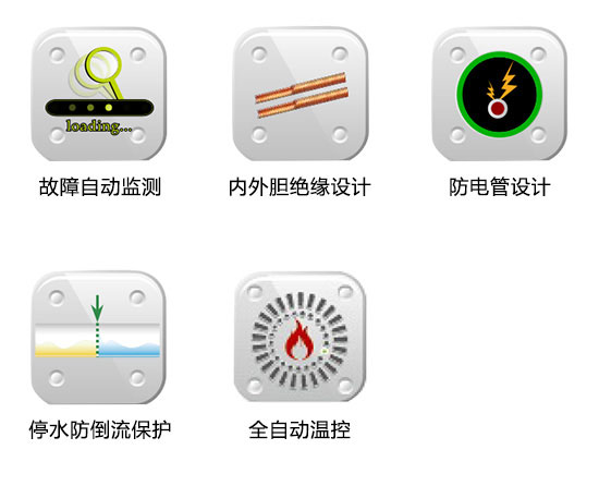 配有漏電開(kāi)關(guān)保護(hù)、防電管設(shè)計(jì)、意外漏電保護(hù)、停水防倒流保護(hù)、超壓保護(hù)等多項(xiàng)保護(hù)功能,讓您使用安全無(wú)憂。 |