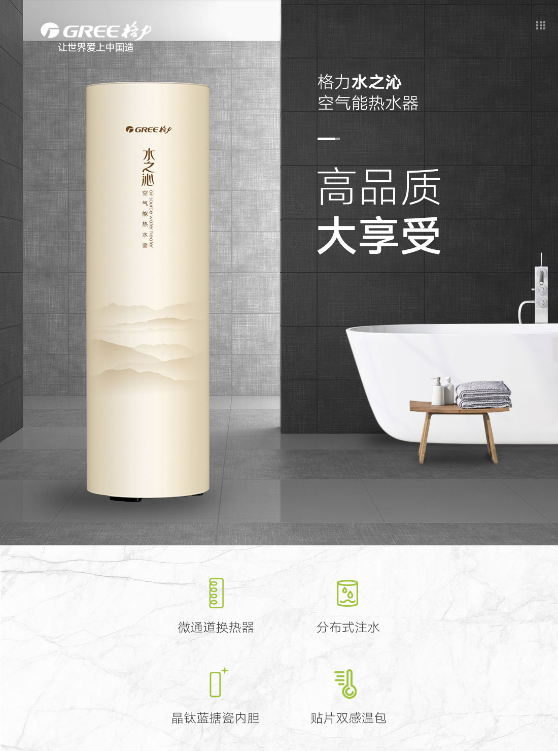 新型環(huán)保冷媒,綠色節(jié)能更高效,內(nèi)置增容、向日葵、i-know等個(gè)性化功能;給您的沐浴帶來多樣化體驗(yàn)
