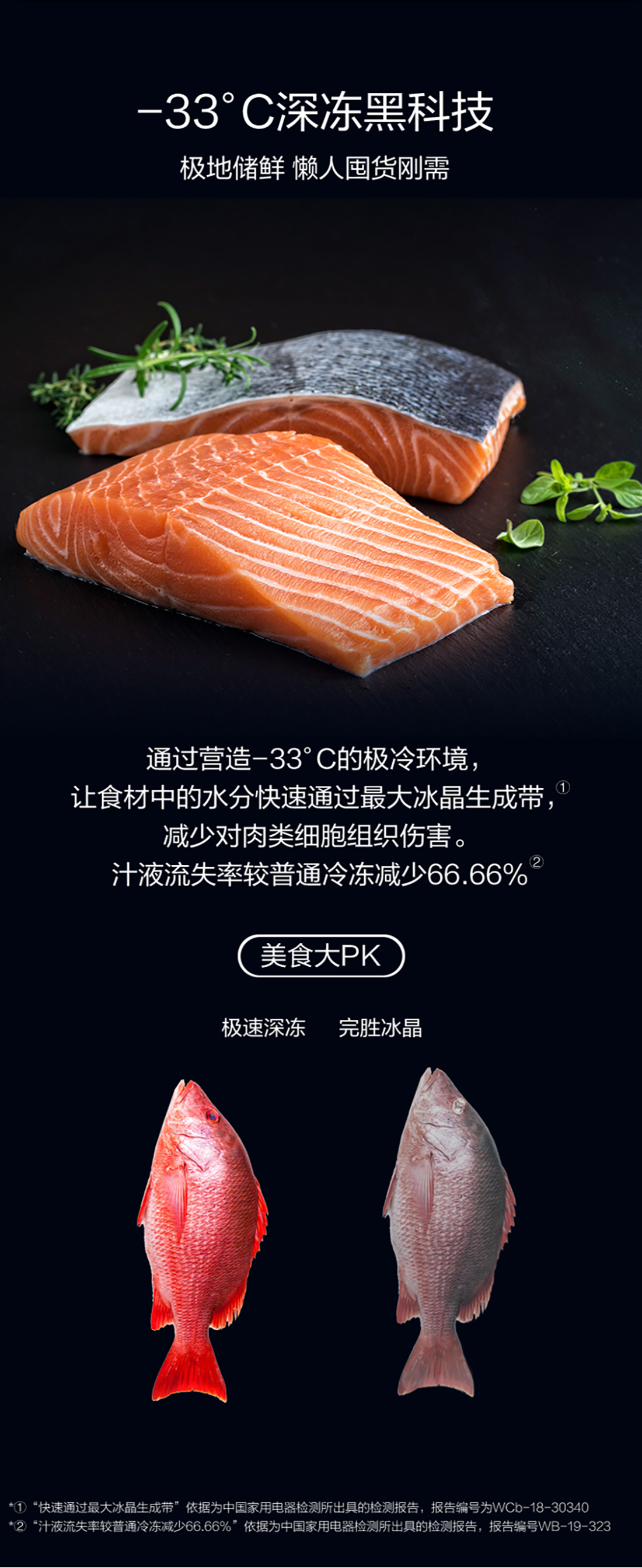 搭載-33℃深凍鎖鮮科技,肉汁飽滿更長(zhǎng)久。采用離子長(zhǎng)效抗菌凈味,抗菌率高達(dá)99.9%。風(fēng)冷無霜,拒絕風(fēng)干,食材水潤(rùn)新鮮。