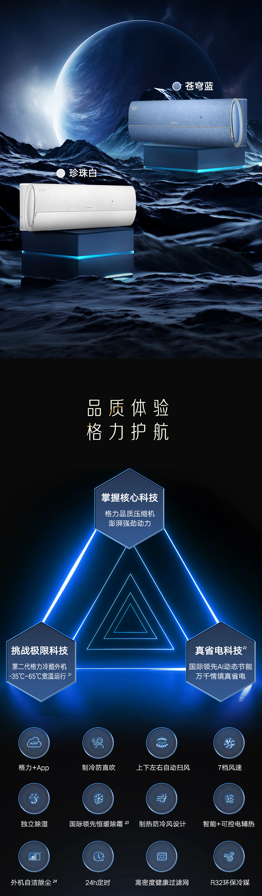 3、格力電器盡力按照發(fā)布的最新產(chǎn)品信息更新本網(wǎng)頁/本配置表內(nèi)的產(chǎn)品信息,但可能出現(xiàn)更新延遲的情形,具體功能、性能參數(shù)、外觀結(jié)構(gòu)等請以實機為準(zhǔn)。